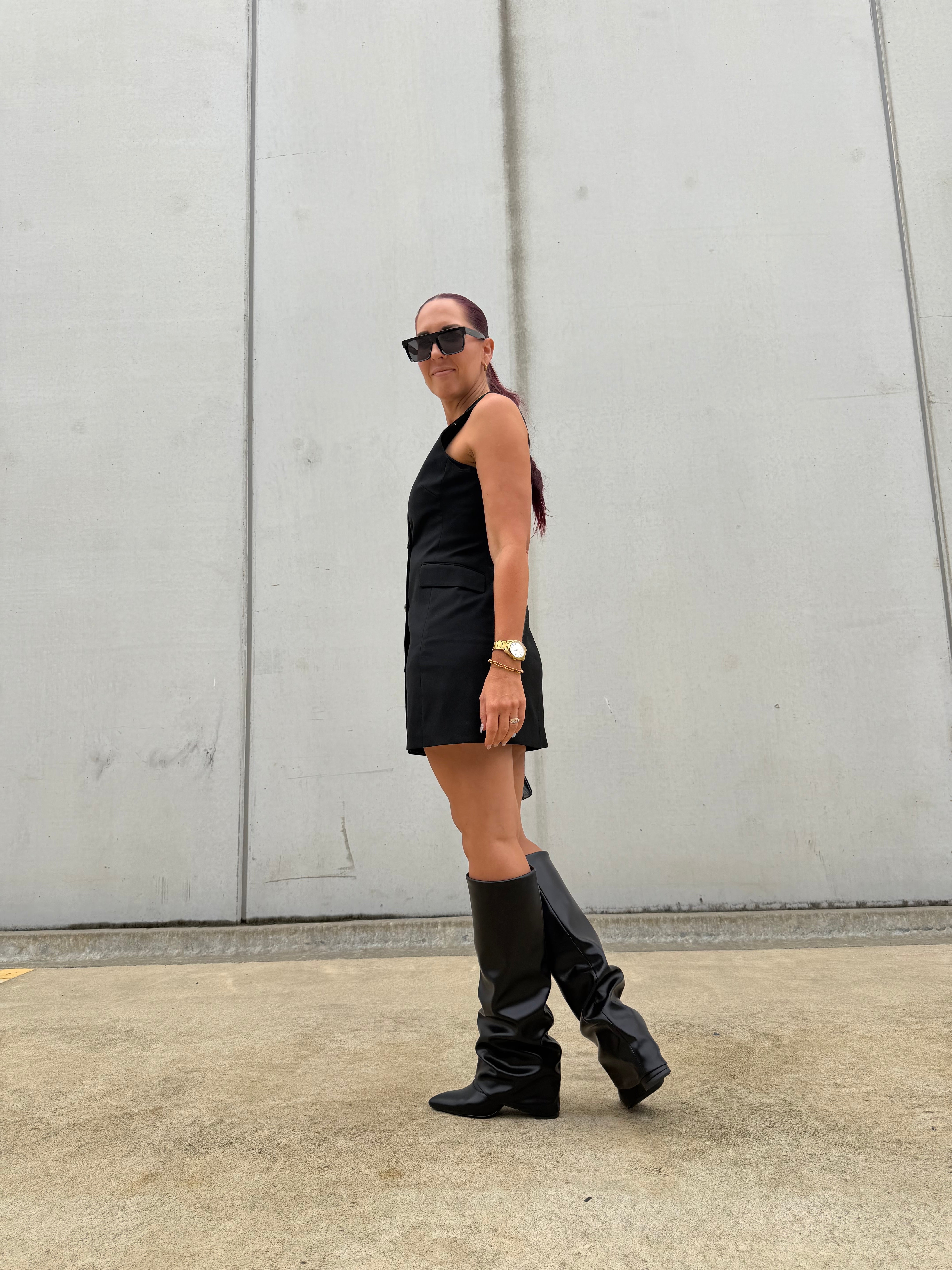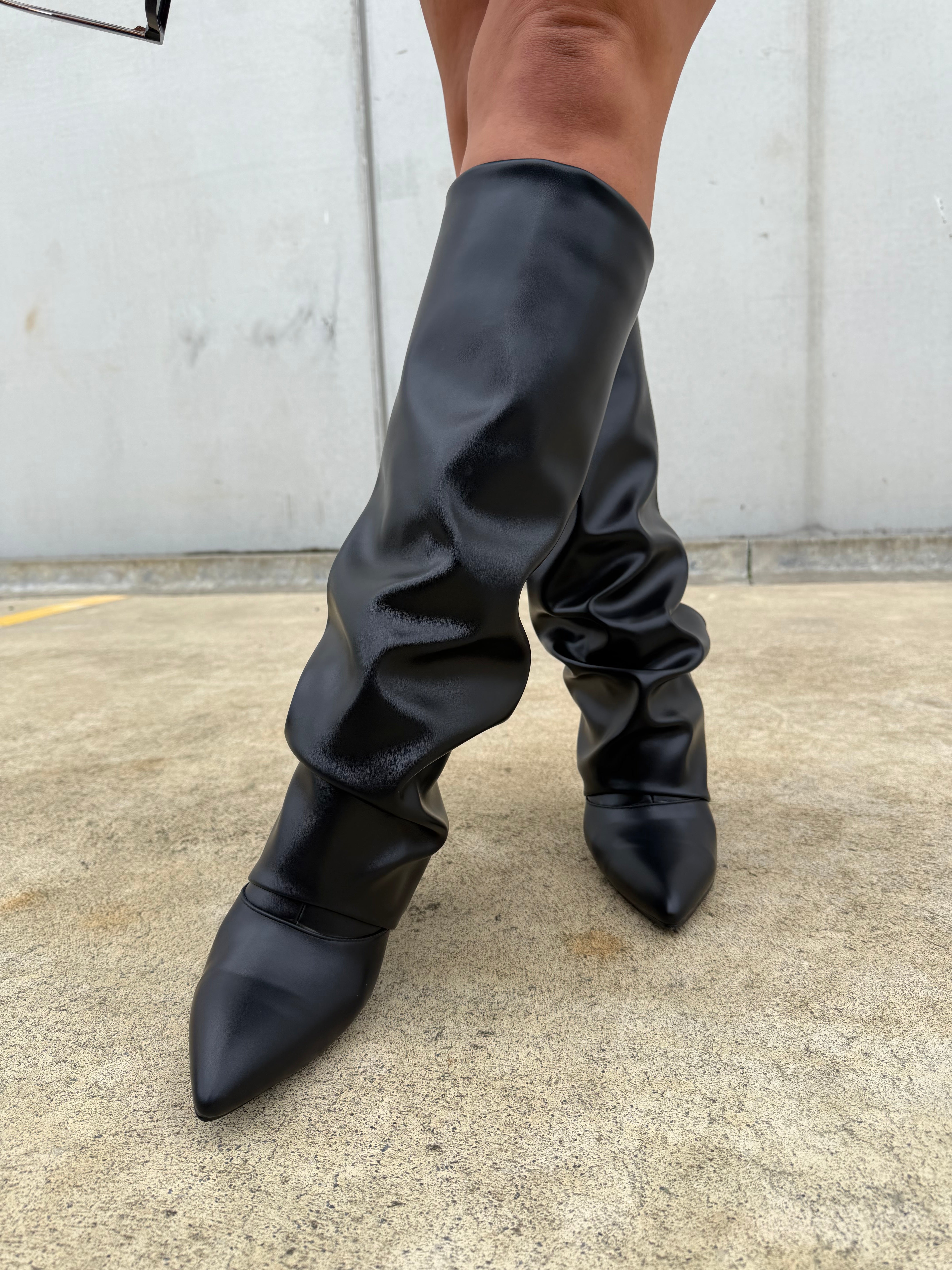 PREORDER: As this style is a preorder release, orders will ship approximately 4 weeks from order. Note: as this is a preorder item ordered specifically for you, it is not eligible for a refund. Store credit only. Accommodates wide feet. Calf Measurements: size 37 = 39cm size 38 = 39.5cm size 39 = 40cm size 40 = 40.5cm size 41 = 41cm size 42 = 41.5cm size 43 = 42cm. Crafted with a sleek silhouette and a versatile fold-over shaft, these block heel boots blend fashion and everyday comfort for year-round wear. Made from vegan leather, they offer a polished look without...