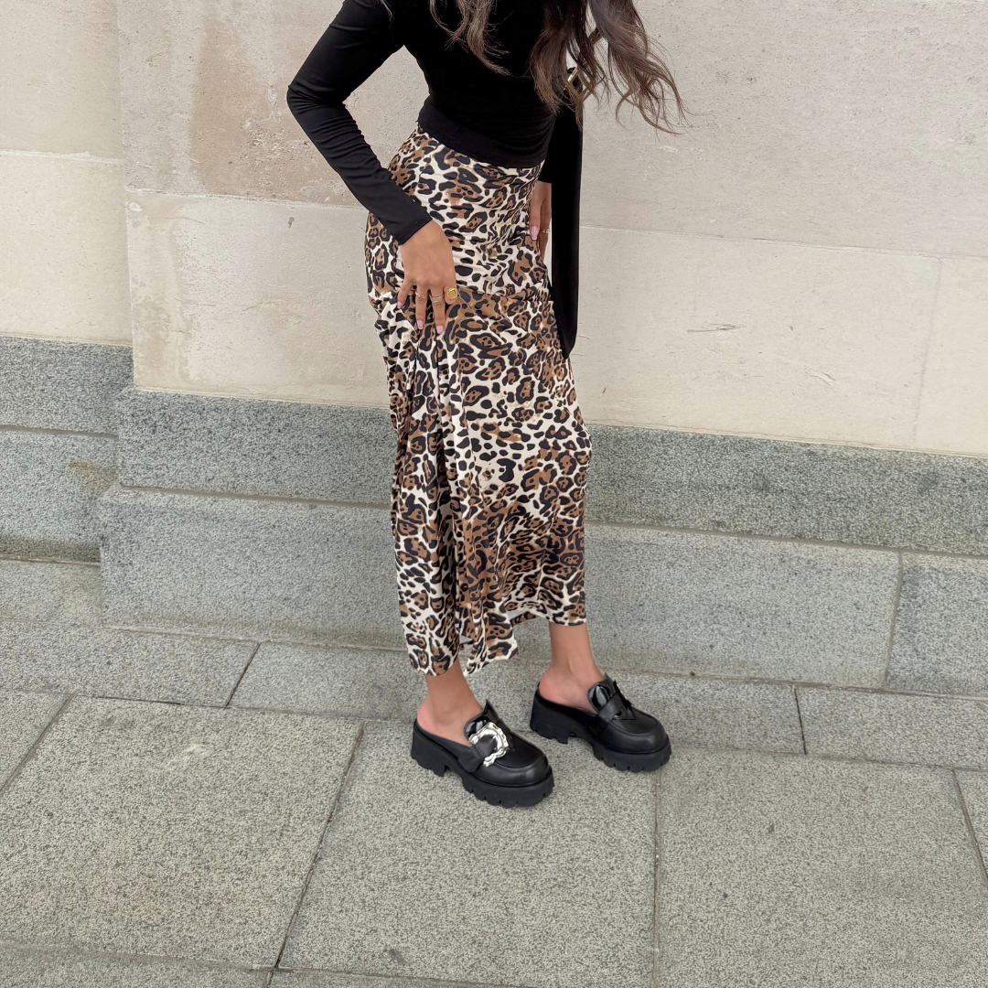 Crafted in black leather and grounded with a lug sole for stability, it adds height without pressure and attitude without effort.