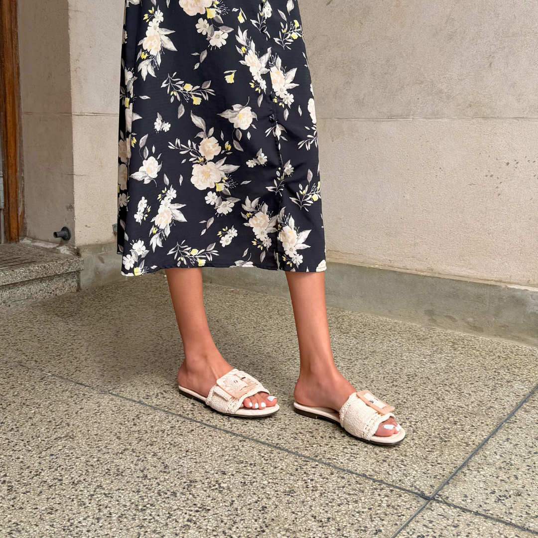 The Isla Flat is an effortless summer staple. Hand-woven raffia brings natural texture and laid-back charm, while the sleek almond-toe silhouette keeps it refined. Lightweight and versatile, this flat pairs as easily with denim as it does with airy dresses — the ultimate warm-weather essential.